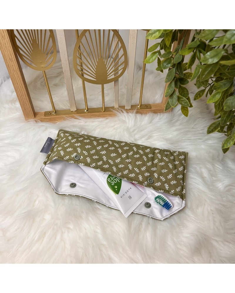 Glissez votre brosse à dents dans un étui stylé, lavable et écolo : fini les sacs plastiques, voyagez avec classe et propreté !Une face en coton Oeko-Tex