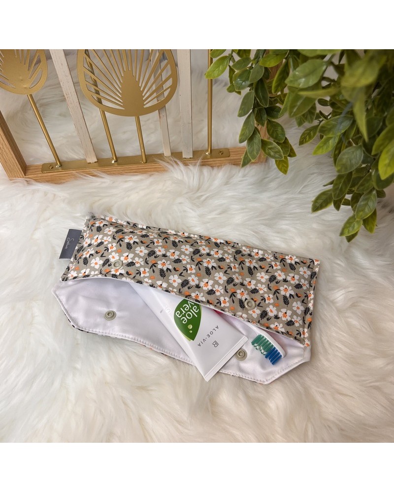 Glissez votre brosse à dents dans un étui stylé, lavable et écolo : fini les sacs plastiques, voyagez avec classe et propreté !Une face en coton Oeko-Tex